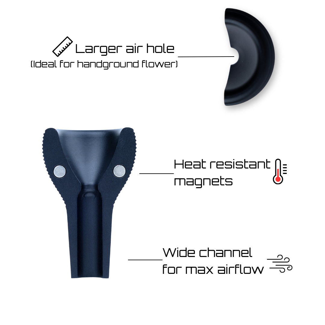 The round shape was used. The airflow increased. The shape of the inner bowl was improved & texture was added, for really, no other reason besides being badass.